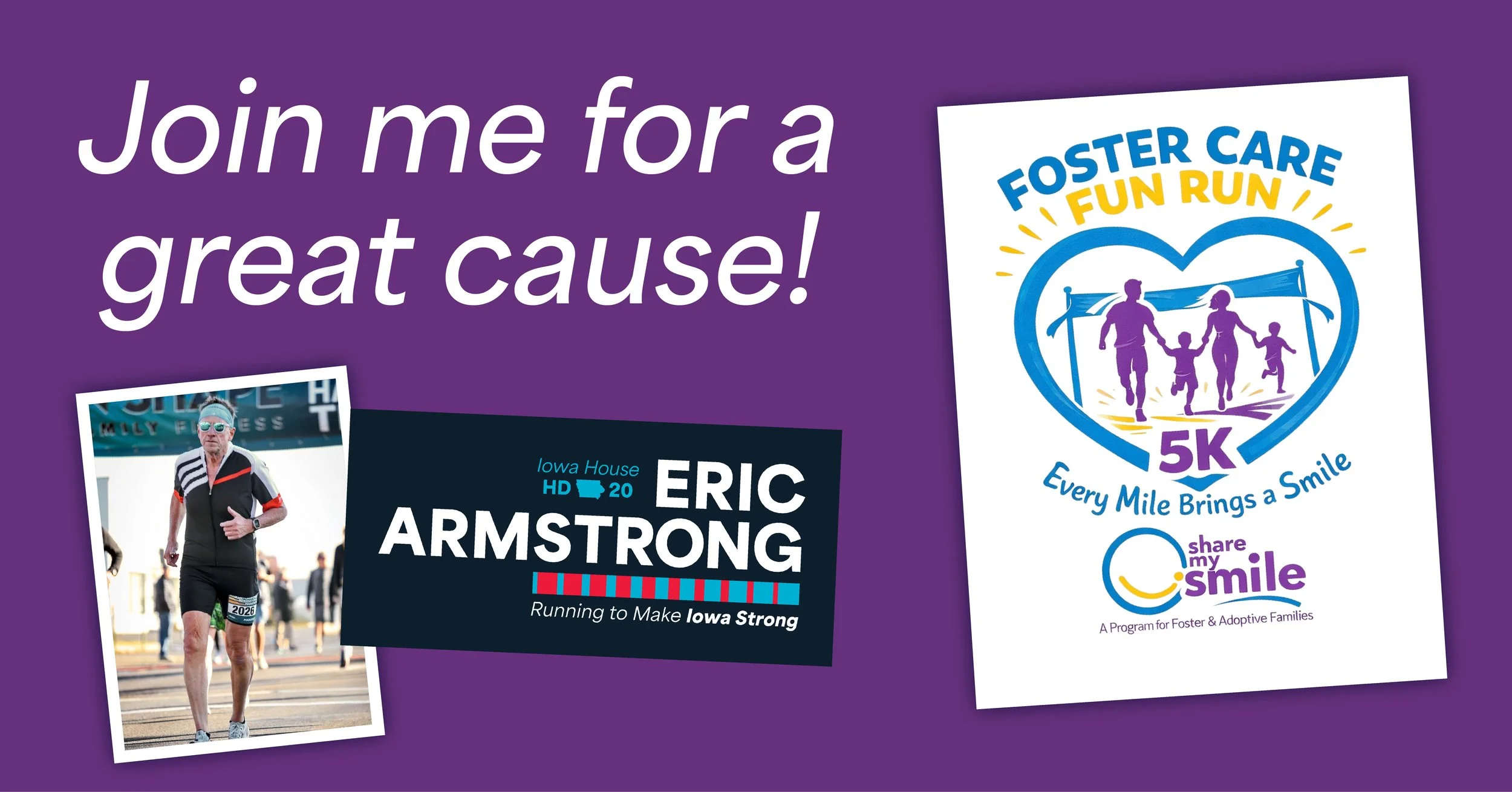 Run with me, walk with me, or just cheer for this wonderful group by signing up with the Eric Armstrong For Iowa Team