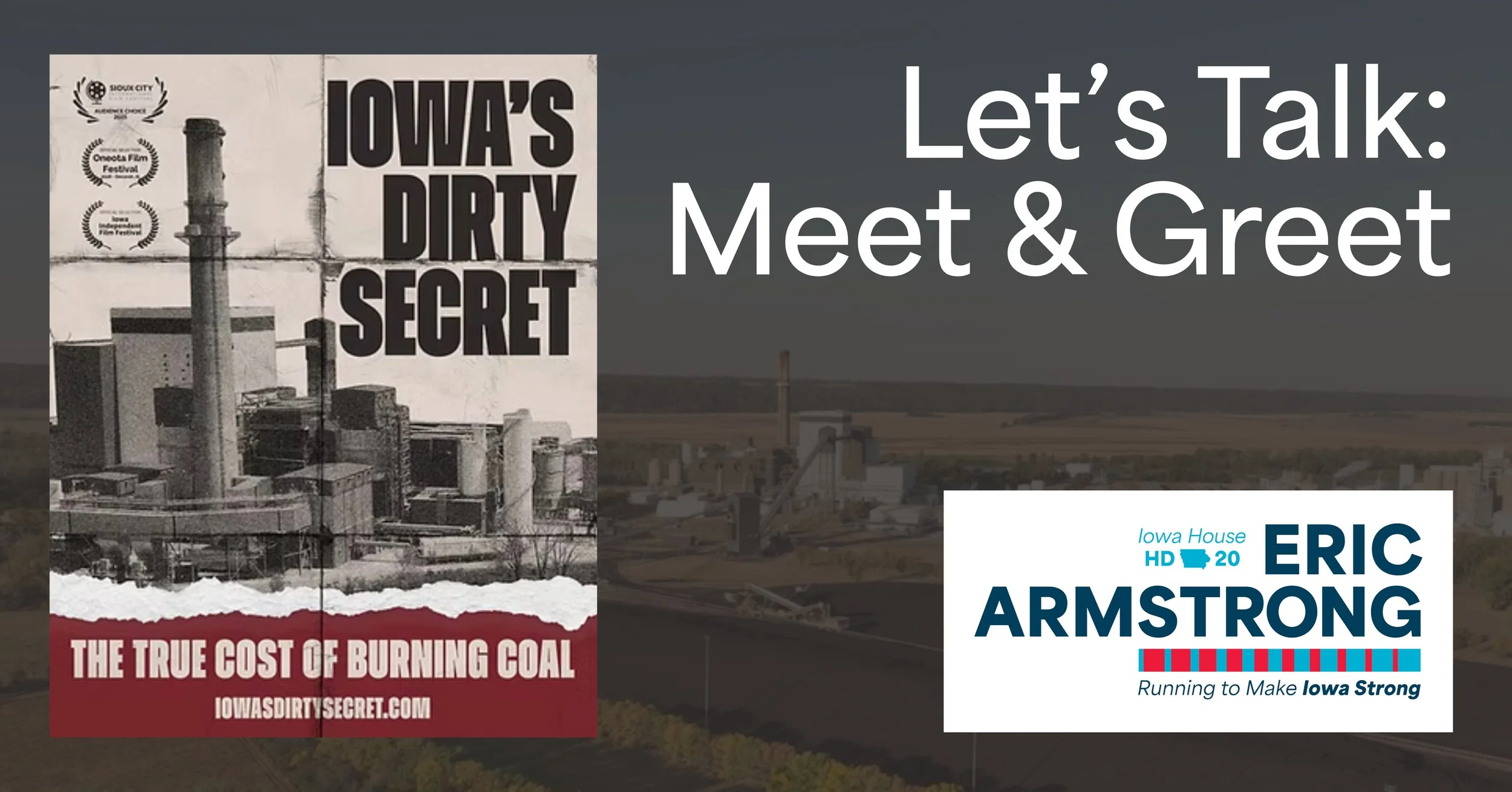 Let’s Talk: Meet & Greet Monday, April 13, 2026 5:00 PM 6:30 PM 1000 South Main Street Council Bluffs, IA, 51503 United States (map) Google Calendar ICS Grab an opportunity to chat with Eric Armstrong, Iowa House District 20, ahead of a very special film screening. Let’s talk about the issues facing Iowans.